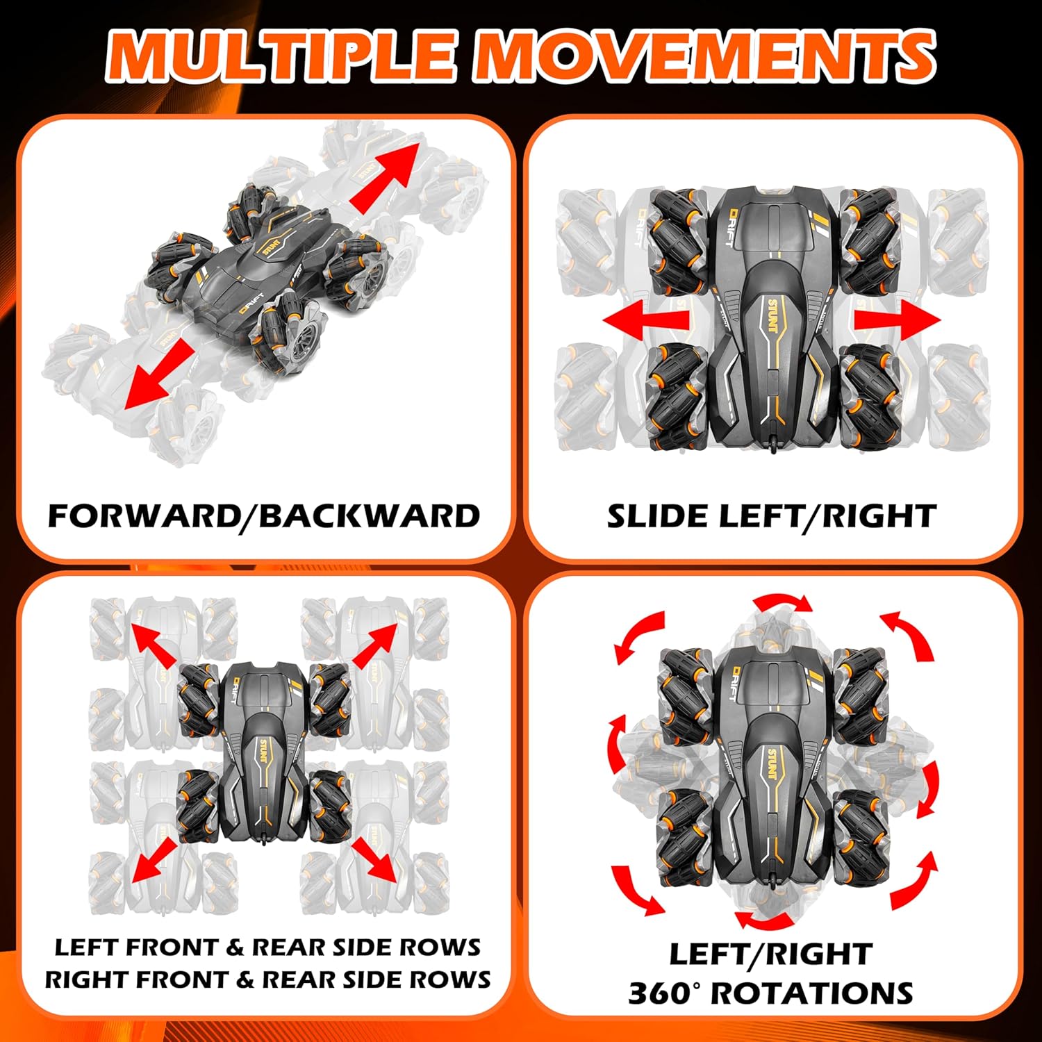 - 360° Drift & Rotation - Watch it glide sideways, spin horizontally and vertically, and perform professional-looking drifts on any surface. The innovative drift wheels make every move smooth and exciting.